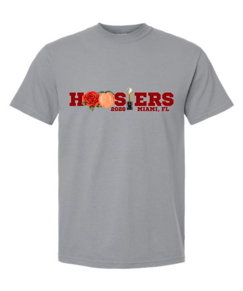 Show your Hoosier pride in style with our Hoosiers 2026 Tee, designed to celebrate an unforgettable year in Miami, Florida. This classic tee features bold crimson lettering accented with a rose, peach, and championship-inspired trophy graphic for a look that’s equal parts tradition and celebration.