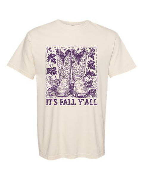 Celebrate the season in style with this rustic western design featuring detailed cowboy boots surrounded by autumn leaves and pumpkins. Perfect for cozy days, fairs, and all your favorite fall activities.